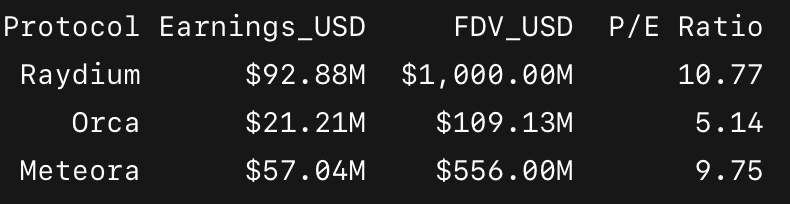 我对Defillama提供的前几个季度的可用数据进行了年化,从结果来看,Raydium和Meteora的PE倍数相似,而Orca则明显被低估。在价值累积机制方面,Orca通过从协议费用中回购,向现有质押者分配了三位数的年化收益率(APR)。